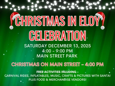 Saturday, December 13, 20254:00 PM – 9:00 PMMain Street Park – Eloy, Arizona Christmas on Main Street – 4:00 PMFree activities including carnival rides, inflatables, music, crafts, and pictures with […]
