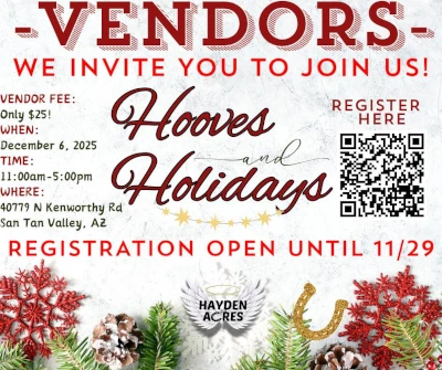 The Hooves and Holidays vendor event returns to San Tan Valley on December 6, 2025, inviting local businesses and artisans to participate in a festive holiday market. Hayden Acres is […]